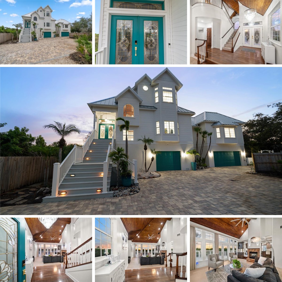 With its unparalleled blend of sophistication and natural serenity, this exquisite residence offers a tranquil setting, abundance of green space, and views that are captivating. The interior is defined by meticulous attention to detail and a sense of timeless, refined luxury. Elevated construction with living areas on the second and third levels are easily accessed by either stairs or elevator. The entry through double glass doors to the main living level is impressive with its vaulted ceilings, soft lighting and detailed rich planked wood ceilings. A spectacular kitchen with large center island, top of the line appliances such as a 6 burner gas stove is certain to impress the most selective chef. Family and guests will enjoy the two sided fireplace during casual meals or grand-scale entertaining in the adjoining dining room. Three additional bedrooms, one currently used as an office, provide a floor plan that is functional. The entire third level is comprised of the opulent primary suite featuring a lavish bath area with exquisite finishes- soaking tub, walk in shower with multiple heads, mirrors with touch activated lighting and temperature control; the area exudes refined luxury. Be captivated by the sensational sunsets from your adjoining private terrace. Ground level flex area, not included in the heated square footage, provides additional space for exercise, hobbies or recreational activities and offers a casual bar and full bath. Additionally, the property offers a 4+garage, separate work shop and plenty of additional storage areas. Appreciate the private side yard for gardening, play area or various outdoor possibilities-this is a property with a multitude of possibilities for those with varied interest. The striking architectural design blends seamlessly with the natural landscape and allows for a private retreat where luxury meets the beauty of nature! And yet it is just minutes from beaches, shopping and access roads to neighboring Tampa and St Petersburg. Don’t miss this one!